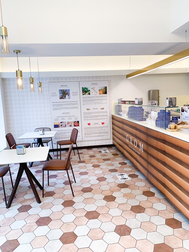 Jestli vás už nebaví chodit stále do těch stejných podniků pro prvotřídní zmrzlinu, pak je pro vás nový Grom jako stvořený. Nejlepším pražským zmrzlinárnám totiž opravdu silně konkuruje! Pro nás osobně to byla opravdu ta nejlepší zmrzlina, co jsme kdy měly. Vyzkoušely jsme čtyři příchutě – pistáciovou, čokoládu s lískovým oříškem, slaný karamel a krémovou stracciatellu. Těžko říct, která byla nejlepší, všechny čtyři předčily naše očekávání (a to jsme měly velmi vysoko posazenou laťku!).